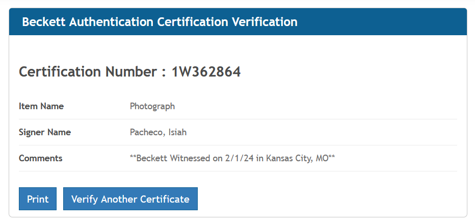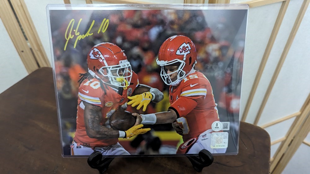 Isiah Pacheco signed 8x10 Chiefs photo, Patrick Mahomes handing the ball off to Pacheco. Beckett Witnessed COA: 1W362864