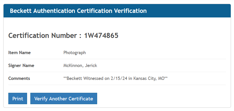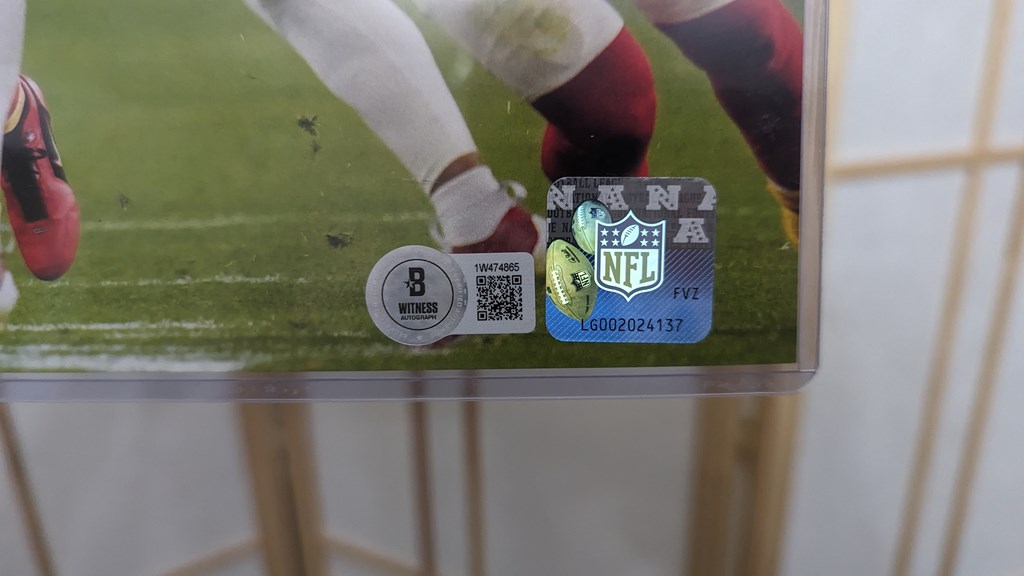 Jerick McKinnon signed 8x10 Chiefs photo, McKinnon cutting across a block with the ball. Beckett Witnessed COA: 1W474865