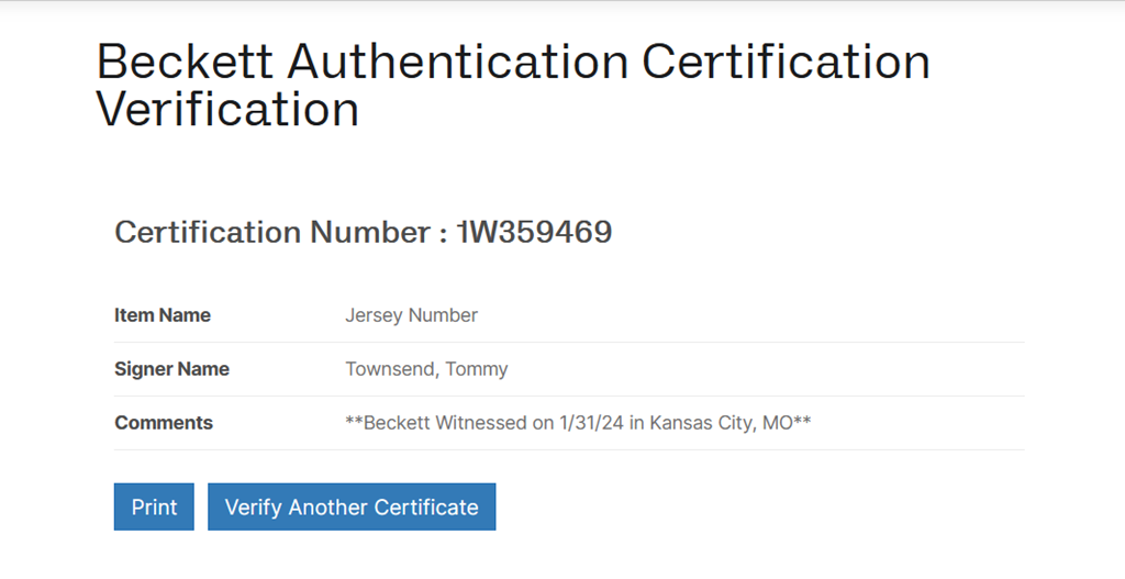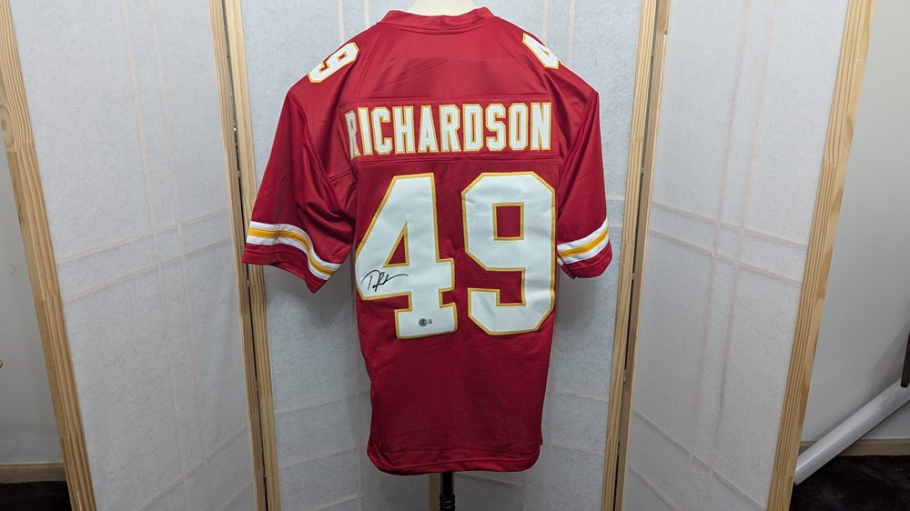 Tony Richardson signed Chiefs jersey. Size XL. Beckett Witnessed COA: 1W359469 An additional shipping & handling fee of $10 applies.