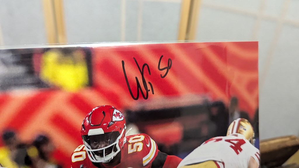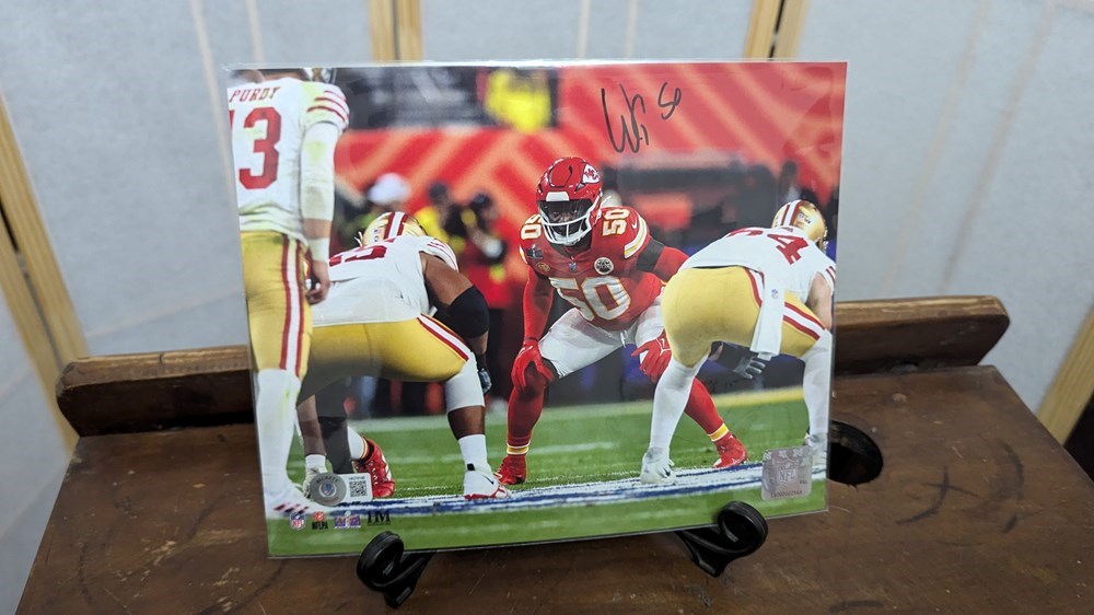 Willie Gay Jr. signed 8x10 Chiefs photo, Gay lined up pre-snap before a play. Beckett Witnessed COA: 1W276198