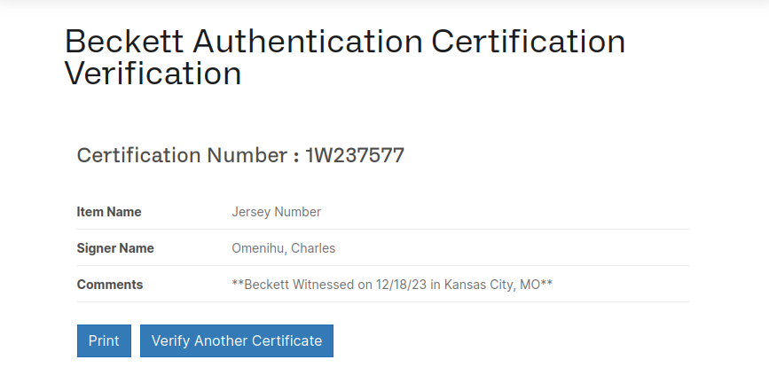 Charles Omenihu signed Chiefs jersey. Beckett Witnessed COA: 1W237577