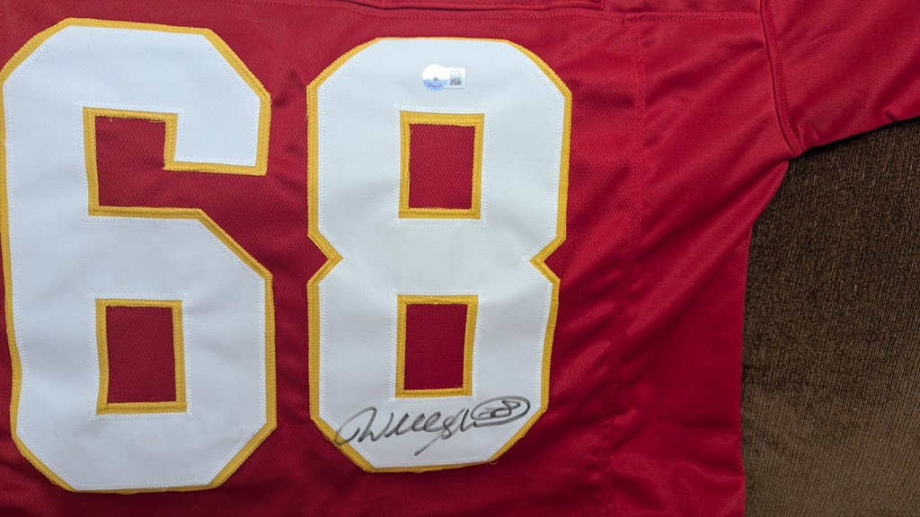 Will Shields signed Chiefs jersey. Beckett Witnessed COA: W258322