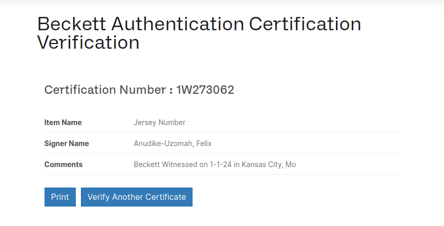 Felix Anudike-Uzomah signed Chiefs jersey. Beckett Witnessed COA: 1W273062