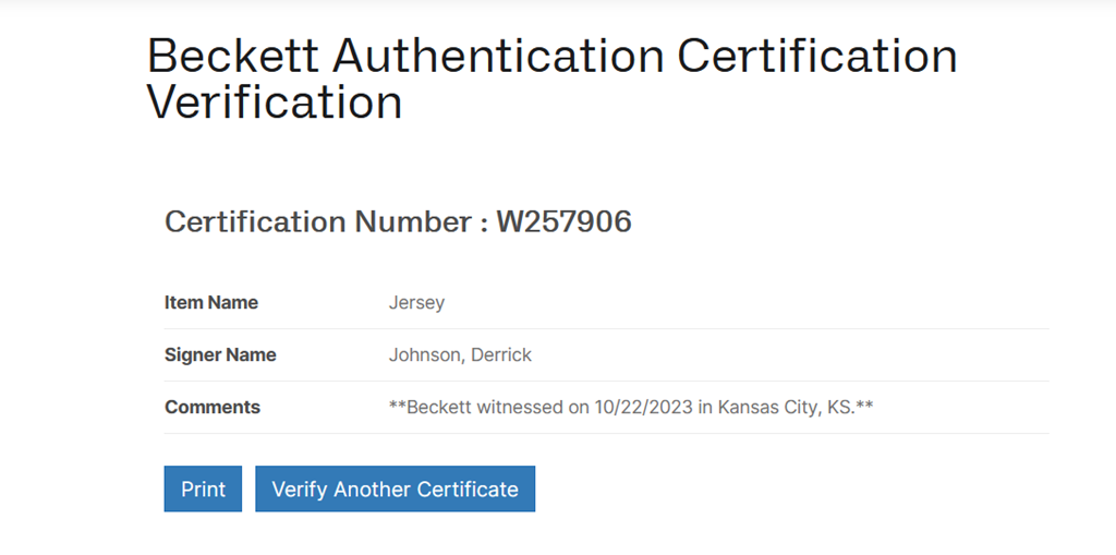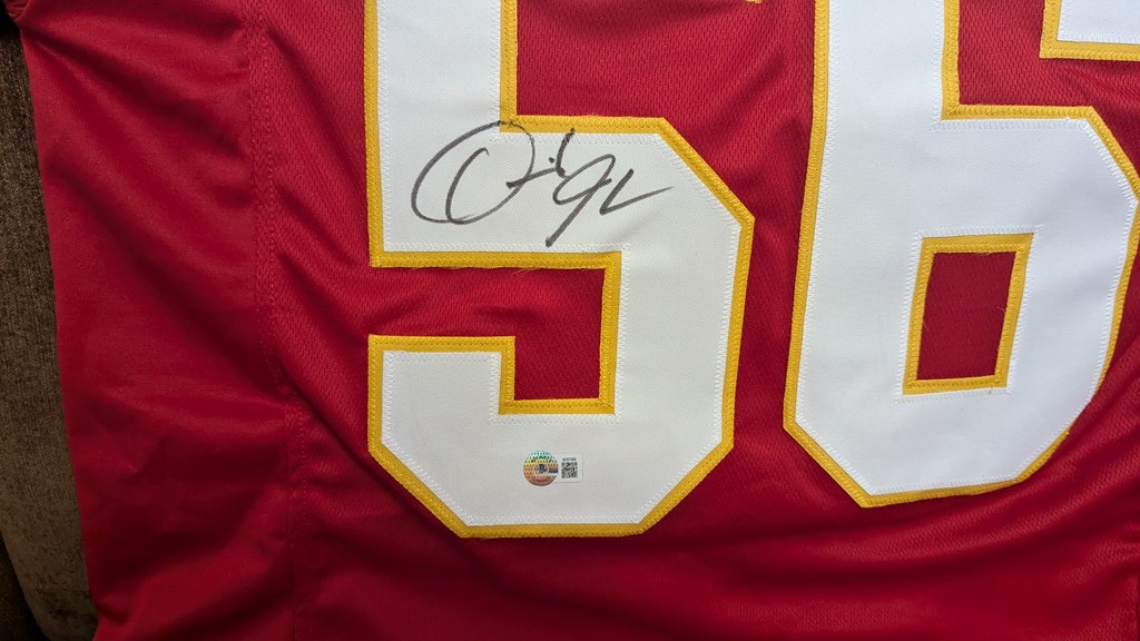 Derrick Johnson signed Chiefs jersey. Beckett Witnessed COA: W257906