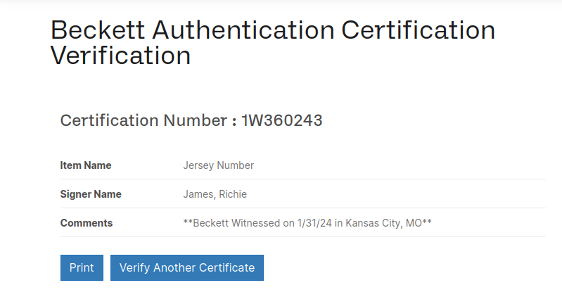 Richie James signed Chiefs jersey. Beckett Witnessed COA: 1W360243