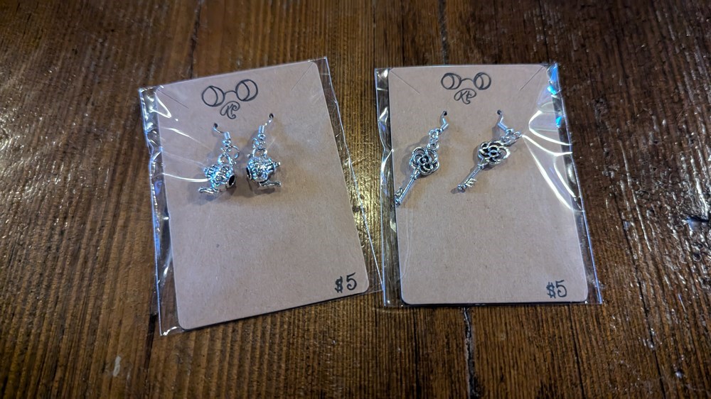 2 sets of Alice in Wonderland themed earrings by KP Garcia.