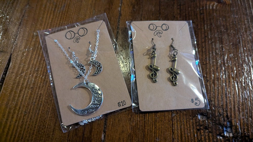 Earrings and necklace by KP Garcia.