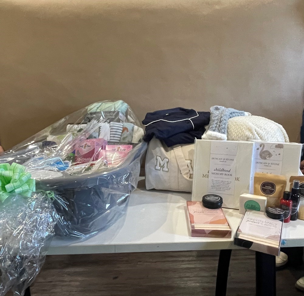 Spoil a mama to be and baby with this luxury bag, straight from our own SB Boutique! This mama bag is stuffed with comfy pajamas, a blanket, socks, and luxury organic bath salts, oils and lotions. Also, in partnership with Fayetteville's own quality Duncan and Stone, this package includes baby and child prayer cards, and baby and childhood journals. The baby bath, sponsored by Bayer, is filled with goodies like prenatal vitamins, blankets, and other baby essentials! https://www.sharedbeginningsboutique.com/about-1 https://www.duncanandstone.com/